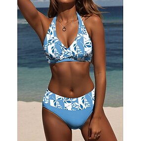 Maiôs Femininos Biquíni de 2 Peças Traje de Banho Avental Sem Costas Slim Roupas de Praia de Férias Floral Halter Sem Mangas