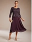 Mulheres Vestido midi Vestido de chiffon Elegante Côr Sólida Manga 3/4 Gola Redonda Roxo Verão Primavera Outono Inverno