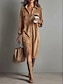 Vestido midi feminino de veludo cotelê, modelo reto, casual, boho, para escritório, uso diário, férias, liso, manga longa, lapela, preto, marrom claro, marrom, outono/inverno