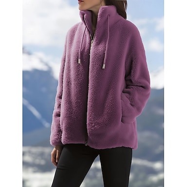 Mulheres Casaco de inverno Casaco de pelúcia Manter Quente Confortável Com Cordão Zíper Elegante Felpudo Casual Côr Sólida Casa Casual Curto Colarinho Chinês Normal Manga Longa agasalhos Vermelho