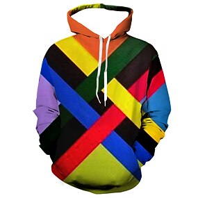 Homens Gráfico Xadrez Bloco de cor Moletom Moletons Roupa de Esporte Casual Grande e Alto Manga Longa Com Capuz Casual Diário Feriado Vermelho Azul Roxo Laranja Verde Cordões Outono & inverno Designer
