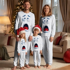 Olhar de família Natal Pijama de Natal para a Família Pijamas Conjuntos de família Gráfico Boneco de Neve Casa Imprimir Vermelho Manga Longa Diário Roupas Combinando