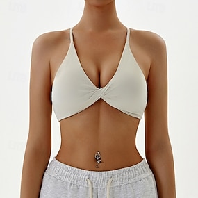 Mulheres Sutiã Esportivo Gola Redonda Secagem Rápida Leve Respirável Cruzado das Costas Sem Manga Sustentação Leve Esportes Côr Sólida Sutiã Esportivo Para Treino de Ginástica Ginástica Corrida