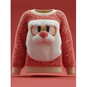 Suéter feminino de Natal, fofo, streetwear, casual, estampado, Papai Noel, gola redonda, patchwork, tricô, manga longa, blusa regular, tricô, festa de Natal, feriado, vermelho, outono, inverno