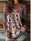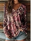 T Shirt Boho Feminina Gráfico Floral Plantas Vintage Estilosa Casual Mangas Longas Gola V Tops Regulares Diários Fim de Semana Estampa Azul-Preto Vermelho Marrom Verão Primavera