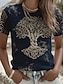 Mulheres Camiseta Imprimir Floral Gráfico Geométrica Vintage à moda Casual Manga Curta Gola Redonda Tops regulares Casual Diário Final de semana Preto Rosa Azul empoeirado Marron Verão Primavera