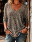 Mulheres Camiseta Camisa Henley Botões Imprimir Âmbar Floral Vintage Vintage à moda Básico Manga 3/4 Decote V Tops regulares Final de semana Azul Azul Céu Rosa cor de Rosa Verão Primavera Outono