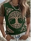 São Patrício Mulheres Camiseta Imprimir Âmbar Floral Gráfico Elegante Vintage Casual Manga Curta Decote V Tops regulares Diário Final de semana Roupas de férias Verde Sage Verão