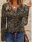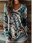 Camiseta Boho Feminina Gráfica Plantas Tribal Vintage Estilosa Clássica Manga Longa Decote em V Tops Regulares Impressão Diária Azul Verde Claro Vinho Azul Marinho Fúcsia Primavera Outono Inverno