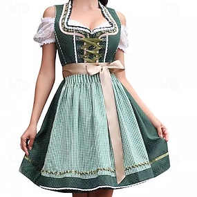 Carnaval Cerveja Oktoberfest Dirndl Trachtenkleader Blusa Dirndl Oktoberfest / Cerveja Bávaro Bávaro Viena Estilo Tradicional prados Mulheres Pano de Estilo Tradicional Camisa Avental