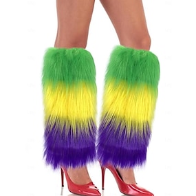 Womens Mardi Gras Aquecedores de Perna de Pele Sintética Colorida Faixa para Cabeça de Pena Acessórios de Fantasia para o Dia de São Patrício