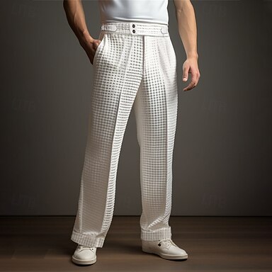 Homens Calças Social Calças Plissadas Calças de Terno Calça Waffle Botões Bolso frontal Perna reta Tecido Conforto Respirável O negócio Diário Feriado Moda Chique & Moderno Preto Branco