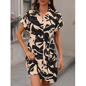 vestido de camisa feminina vestido casual mini vestido encontro férias camisa casual moderna colarinho botão impressão manga curta verão primavera ajuste solto floral folha