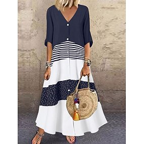 Mulheres Vestido Longo Vestido T shirt Vestido A Line Vestido justo e evasê Casual Diário Normal Gráfico Meia Manga Decote V Preto Azul Marron Verde Verão