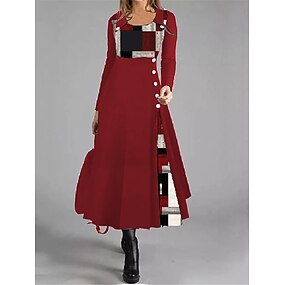 vestido casual feminino vestido linha a patchwork geométrico botão manga longa gola redonda preto vermelho trabalho outono inverno macio confortável regular