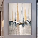 Handmade Oil Painting Canvas Wall Art Decoration Golden and Grey Sailboat for Home Decor Rolled Frameless Unstretched Painting |