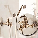 Shower Faucet Set Wall Mounted Vintage Brass, Shower System Handheld Sprayer, with Tub Spout Cold and Hot Hose |
