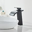 Bathroom Sink Faucet Waterfall Spout, Brass Mixer Basin Taps, Single Handle One Hole Bath Taps Painted Finishes Tall Body Modern Style |