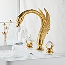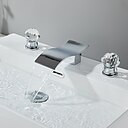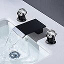 Bathroom Faucet 3 Hole Dual Crystal Knobs Widespread 3 Holes Vanity Basin Mixer Tap Bathtub Filler Faucet Waterfall Faucet for Bathroom(Golden/Black/Chrome) |