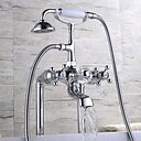 Bathtub Faucet - Retro Vintage Electroplated Free Standing Ceramic Valve Bath Shower Mixer Taps