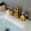 Widespread Bathroom Sink Faucet,Two Handle Three Holes Waterfall Electroplated Bath Taps |