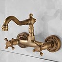 Bathroom Sink Faucet - Rotatable / Wall Mount Antique Brass Wall Installation Two Handles One HoleBath Taps |