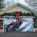 Christmas Outdoor Garage Door Cover Xmas Banner Santa Claus Motorcycle Large Christmas Backdrop Decoration for Holiday Outdoor Garage Door Home Wall Decorations |