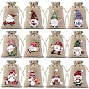 12pcs Christmas Burlap Gift Bags Set with Random Holiday Designs, Small Party Favor Pouches, Perfect for Christmas and New Year Celebrations |