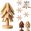 Natural Tree Trivet Set, 3/4/5 Wooden Trivets & 1 Stand Like a Christmas Tree, Natural Foldable Kitchen Trivets for Pots, Pans, Bowls & Teapots |