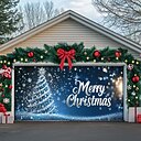 Christmas Outdoor Garage Door Cover Santas Home Gingerbread House Reindeer Snowman Gift Boxes Christmas Wreath Large Tapestry Backdrop Decoration For Holiday Outdoor Garage Door Home Wall Decorations |