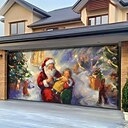 Christmas Garage Door Cover Santa Claus House Large Hanging Backdrop 2 Car Outdoor Holiday Party Decoration 2D flat print Festive Wall Banner Yard Home Christmas Scene Background 7*8 FT |