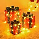 3pcs Christmas Lighted Gift Boxes Battery Operated Fairy Lights Set of 6inch/8inch/9inch with Bows Present Boxes for Christmas Weddings Yard Home Holiday Art Decorations |