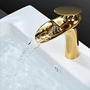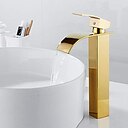 Waterfall Bathroom Sink Mixer Faucet Tall Short, Mono Wash Basin Single Handle Basin Taps, Washroom with Hot and Cold Hose Monobloc Vessel Water Brass Tap Deck Mounted Golden Black