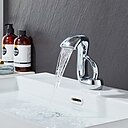 Waterfall Bathroom Sink Mixer Faucet Brass, Single Handle Basin Taps One Hole Faucets with Hot and Cold Hose, Waterfall Spout Brass Bath Tap Chrome Black Gold Grey