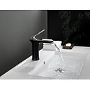 Waterfall Bathroom Sink Mixer Faucet Deck Mount, Mono Wash Basin Single Handle Basin Taps Washroom with Hot and Cold Hose, Monobloc Vessel Water Brass Tap Black White Chrome Brushed