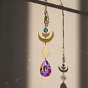 Suncatcher Gold with Crystals, Moon Celestial Themed, Light Reflection Crystals, Drop Gold Chain Design, Moon & Stars (Crystal Drop Style) |