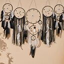 1pc Dream Catcher Handmade Gift Feather Hook Star Pattern Wind Chime with One Circles Ornament Wall Hanging Decor Art Boho Style Without Light |