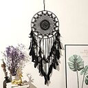 1pc Dream Catcher Handmade Gift Feather Hook Moon Pattern Wind Chime with One Circles Ornament Wall Hanging Decor Art Boho Style Without Light |
