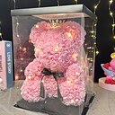 Rose Bear Artificial Foam Flowers with LED Light & Plastic Gift Box- Perfect Romantic Gift for Mother's Day, Anniversary, Wedding, Birthday, Thanksgiving, and Christmas 25cm/10inch