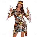 Retro Vintage 1970s 70s Fancy Dress Women Bell Sleeve Hippie Flower / Floral U Neck Fancy Dress Women's Halloween Carnival Masquerade Party Daily Wear Pride Parade Adults' Dress All Seasons |