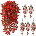 5pcs Artificial Hanging Morning Glory Flowers for Outdoors UV Resistant Faux Petunias Realistic Fake Silk Long Vines Morning Glory Eucalyptus for Outside Indoor Planter Porch Patio Home Decor Mix