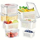 6-Pack BPA-Free Polypropylene Food Storage Containers with Lids, Stackable Refrigerator Organizer Bins with Drain Tray for Fruits, Vegetables, and Dry Goods, Versatile Kitchen Storage System Ideal for Camping and Dining