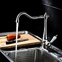 Traditional Kitchen Sink Mixer Faucet, Retro Style Vessel Kitchen Taps Dual Handles One Hole Rotatable Chrome/Brass/Nickel Brushed Standard Spout |