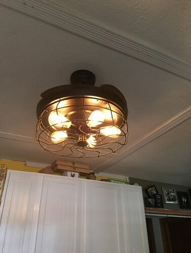 Farm Light Look! Love it!It looks like an old farm light with the added fan that extends when in use and retracts when off. Farm Light Look! Love it!It looks like an old farm light with the added fan that extends when in use and retracts when off.