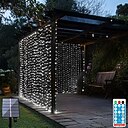3*3M 300 LEDs Solar Curtain Light Outdoor Remote Control Light 8 Lighting Modes Fairy Lights IP65 Waterproof Leather Thread Lights Christmas Party Wedding Home Bedroom Garden Wall Decor