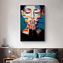 Oil Painting Hand Painted Horizontal People Pop Art Modern Rolled Canvas (No Frame) |
