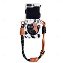 Phone Case For Samsung Galaxy Z Flip 7 Z Flip 6 Z Flip 5 Z Flip 4 Z Flip 3 Back Cover with Wrist Strap Shockproof Cartoon Cat TPU PC |
