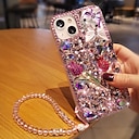 Luxury Rhinestone Floral Case with Beaded Lanyard for iPhone 16e 15 Pro Max Plus 14 13 12 11 Pro Max Mini X XR XS Max 8 7 6 SE – Bling Crystal Full Back Cover |