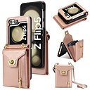 Phone Case For Samsung Galaxy Z Flip 7 Z Flip 6 Z Flip 5 Z Flip 4 Z Flip 3 Wallet Case Zipper with Lanyard PU Leather |