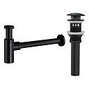 Bathroom Brass Contemporary Round Bottle P Trap Lavatory Adjustable Basin Sink Waste Drain P-Trap Kit with Pop up Drain(Silvery,Black) |